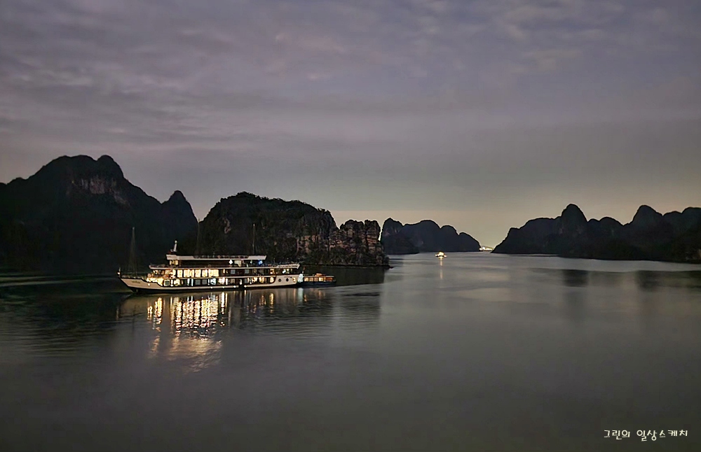 하롱베이 한 가운데에서 정지한 듯, 유유자적 하룻밤은 충분히 아름답다.